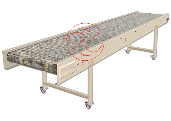 網(wǎng)帶輸送機(jī)以金屬絲編織輸送帶為載體,在一定的線路上連續(xù)輸送物料的機(jī)械,常輸送塊狀、顆粒狀與整件物料的水平傾斜轉(zhuǎn)彎方向的輸送,網(wǎng)帶食品輸送機(jī)具有網(wǎng)孔,且網(wǎng)孔的大小可按需要選擇,食品輸送機(jī)網(wǎng)帶的長度可任意選定。網(wǎng)帶輸送機(jī)可按需加工成提升輸送機(jī)、轉(zhuǎn)彎輸送機(jī)、環(huán)形輸送機(jī)等網(wǎng)帶輸送線。